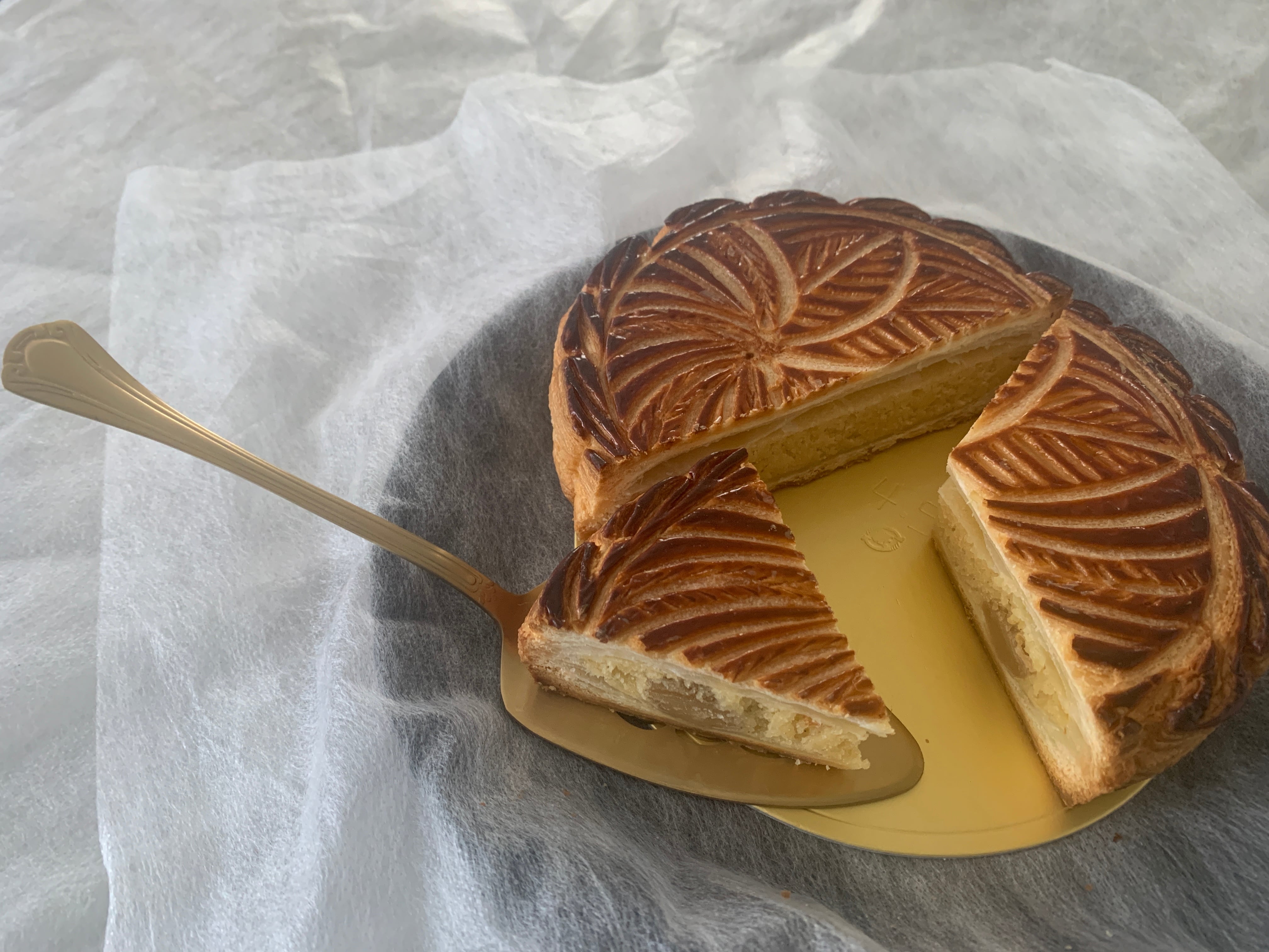 エピファニー(公現祭)に家族や仲間と切り分け、中に入っているフェーブ(陶器のおもちゃ)を当てた人が一日王様になれると言う伝統的な遊びに欠かせない焼菓子。